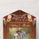 Rustikales Hochzeitsszenario, Watercolor Burgunder Blütenblüte, Holz- und Streichellicht Foto Wedding All In One Einladung mit RSVP Card beinhaltet bordeauxrote Rose, rosa Rosen, rote Rosen, Sonnenblumen und botanisches Grün.