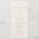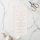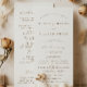 Diese Programmkarte hat eine moderne Form mit einem rustikalen Boho-Twist. Sie hat auf der einen Seite ein schönes Feld für Details zur Hochzeitsgesellschaft und auf der anderen Seite anpassbare Programmdetails. Diese elegante Vorlage ermöglicht es Paaren, ihre Details leicht hinzuzufügen. Die maximale Anpassungsfähigkeit macht es leicht, sie für jede rustikale, moderne oder bohemianische Hochzeit zu personalisieren.