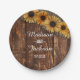 Rustikales Holz & Burlap Sonnenblumen Country Bauernhof Chic Wedding Monogram Papier-Teller mit trendigem Bürstenskript-Schriftart! ~ Karo mein Shop zu sehen, die gesamte Hochzeitssuite für dieses Design!