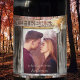 Romantische Verlobung Weinmarke mit Ihrem eigenen Lieblings-Foto gerahmt von rustikalem Holz und einer Blume.