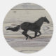 Rustikales Holz Galloping Pferd Wasserfarbe Silhou Runder Aufkleber