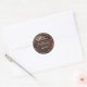 Passen Sie diesen Rundaufkleber mit Ihrem zukünftigen Familiennamen und Ihrer Adresse auf rustikalem Holz und Streichelleuchten in moderner, eleganter Typografie und Schriftzeichen an. Ideal für Hochzeitsreisen oder andere besondere und stilvolle Anlässe, Geschenktaschen und andere Geschenke.