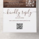 Alles in einer Hochzeitseinladung mit hübschen Saitenlichtern, Mauerkirschen, prächtigen Stilbezeichnungen und schicken Typografien auf rustikalem Holzfußboden. Die Einladung enthält eine perforierte RSVP-Karte mit QR-Code. Entwickelt von Thisisnotme©