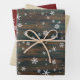 Rustikales Holz Rote Schneeflocken Weihnachtsfeier Geschenkpapier Set