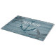 Rustikales und elegantes blaues Holzdesign. Starfish Briefmarke Overlay mit Anker solide Grafik. Benutzerdefinierter Familienname in fett formatierten Sans Serif Schriftart und chic Skriptfamilie Typografie. Der gesamte Text ist einstellbar. Schönes Design für Strandhaus, Ferienhaus Zuhause, Boot oder nautische Wohngestaltung.