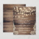 Ein klassisches Hochzeitstil mit rustikalem Holzfußboden, Vintagen Imitaten und Lichtern. Ihre Zeremonie Details erscheinen in formaler Typografie. Im Rahmen der Budgetauswahl hier auf Zazzle kommen diese Einladungen nicht mit Umschlägen und passen nicht perfekt in einen Standard-Umschlag. Die nahe Größe ist A6, aber es gäbe eine Lücke von ca. 10 cm. Wenn es Ihnen nichts ausmacht, können Sie so weit verfügbare A6-Umschläge verwenden. Andernfalls kann dieses Design über das Design Transfer Tool in ein Standardformat (das mit Umschlägen geliefert wird) übertragen werden.