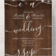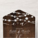 Ein rustikales Land braunes Holz und weißen Sommer glühende Saitenleuchten in einer kalligraphischen Hochzeitseinladung mit uAwg, Unterkünften, Details und mehr Infos. Mit einem modernen und trendigen Skript, fügen Sie Ihre Initialen.