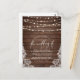 Ein klassisches Vintages Landmotiv im modernen Stil! Dieses Design zeichnet sich durch einen rustikalen Holzhintergrund mit Streichlichtern oben und einer schönen, Vintagen Spitze in den unteren Ecken aus. Der Text erscheint in der Mitte mit "die Hochzeit von" in der Schrift Schrift, um diese extra elegante Touch hinzuzufügen! Ideal für Hochzeiten im Freien im Frühling, Sommer oder Herbst. Passen Sie dieses Design an, indem Sie auf die Schaltfläche "Personalisieren" klicken und in die Textfelder eingeben. Vergessen Sie nicht, die große Auswahl an Papiergrößen, Texturen und Formen, die Zazzle zu bieten hat, beim Karo zu genießen! Matching Artikel in unserem Shop verfügbar.