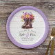 Elegante Aquarellblumen treffen auf rustikale Bauernstiefel für schönen Kontrast im Landstil! Schöne Aquarellästhetik mit einem farbenfrohen Bouquet mit leuchtenden Blüten. Perfekt schillernde Bauernvillen für eine entspannte, zeitgenössische Scheune Hochzeit und darüber hinaus!