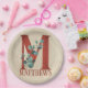 Rustikales Holz und Eukalyptus Letter M Personalis Pappteller
