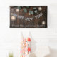 Rustic Wood & String Lights Silvester Party Banner mit rustikalem dunkelbraunem Holz, Eukalyptus, String Lights & Familienname Template.Ein perfektes Design für Silvester Party.Bitte klicken Sie auf Personalisieren Button um es mit Ihrem eigenen Familiennamen zu gestalten.