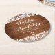 Rustikales Holz und weiße Spitzen glücklich zum Ge Runder Pappuntersetzer