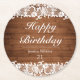 Herzlichen Glückwunsch zum Geburtstag Untersetzer. Rustikaler Stil mit Holzvertäfelungen und weißer Spitzendekoration. In unserem Shop sind weitere Artikel in diesem Stil erhältlich. Sie können das Design weiter bearbeiten, Farben, Schriftart ändern und zusätzlichen Text hinzufügen, indem Sie auf den Link "Weiter anpassen" klicken.