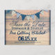 Rustikales Banner aus Barnholz Navy Blauer Jagdbanner Hochzeit Sichern Sie das Datum Postkarten für ein Land Stil oder Vintage Tafel Thema Hochzeit. Fügen Sie Ihre Save the Date-Daten vorne und Ihre Rücksendeadresse hinten hinzu. Es gibt Platz, um jede Postkarte an Ihre Gäste zu richten. Matching-Elemente: