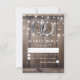 Country chic Hochzeitskarten mit rustikalem Holzgehälle, Hufeisen, Tinkelleuchten und modernem uAwg Template.