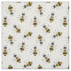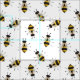Gelb und schwarz gestreifte, illustrierte, rustikale Bienen schmücken diesen Stoff.