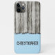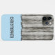 Dieses case-Mate iPhone Gehäuse hat einen anpassbaren Raum, wo Sie Ihren Namen, Initialen oder jeden anderen Text hinzufügen können. Der Hintergrund ist mit einem rustikalen Holzeffekt von Imitaten ausgestattet, der es zu einem großartigen Instrument macht, Ihren persönlichen Stil zu zeigen und Ihr Handy zu heben. Die Farben sind grau und blassblau.