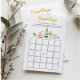 Fügen Sie Ihrem Brautparty eine spielerische Drehung mit diesem rustikalen Bingospiel hinzu. Mit Aquarellbildern und Landschaftsmotiven dekoriert, ist es eine unterhaltsame und interaktive Aktivität für Gäste, die während der Geschenksöffnung oder während der Pausen Spaß haben. Markieren Sie einfach die Geschenke, während sie entpackt - Bingo!