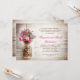 Romantischer rustikaler Holzfußboden und Maurerkirsche mit dunkelrosa Blume Hochzeitstag Party oder Jubiläumsessen Einladungen. Ich schlage ein schönes Textur Leinenpapier für dieses Design vor.