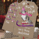Ein Weihnachtsgeschenk-Tag mit einem rustikalen Krafthund mit einem wasserfarbenen Berner Hund in rosa Tuque und Schal auf einem lila und rosa mit Schneeflocken und Sprichwort gekleidet, Merry & Bright, mit Ihrem Namen unten.
