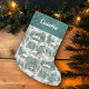 Personalisieren Sie diesen rustikalen Wald Weihnachten Strumpf, mit einem Muster von gemütlichen Ferienhäusern im schneebedeckten Kiefernwald. *Wenn Sie Designhilfe benötigen oder dieses Design auf anderen Produkten wünschen, kontaktieren Sie mich bitte über Zazzle.