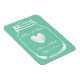 Rustikaler, ländlicher Chic-Kaugummi Speichern Sie den Datums-Magneten mit niedlichem Herzen. Vintages Land schicke Maurerkirsche speichern die Dattelmagnete für Hochzeitsfeier. Niedliches Minzgrün-Design personalisiert mit dem Namen der Braut und Bräutigam plus Heiratsdatum. Anpassbare Hintergrundfarbe. Ideal für rustikale Gartenlaube / Scheunenhochzeit im Sommer, Juni, Juli, August, September. Elegante Stilschrift Typografie. Symbol des verblassten Herzens. Hübsch bedrückter, verwitterter Grunge Stil aussehen. Klassische Kühlschrankmagnet für bald verheiratet zu sein Paar binden den Knoten.