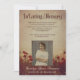 Vintage Gedenkankündigung mit einem Mohnfeld, bedruckt, um verwittert und Vintag auszusehen. Elegante Schriftart in dunkelburgund. Die Rückseite weist ein dunkelrotes Gingham-Muster auf. Fügen Sie auch ein Foto Ihrer Lieben hinzu.
