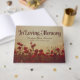 Gästebuch zur Erinnerung mit einem wunderschönen Foto einer Wiese voller Mohnchen, die Vintag aussehen und mit Füßchen verwittert, kombiniert mit wunderschönen Schriftart. Die Rückseite weist ein rotes Gingham-Muster auf. Die Wirbelsäule hat eine passende Farbe mit weißem Text.