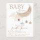 Rustikales Mondspielzeug boho Baby Dusche Budget Einladung. Neutral hellbraun geeignet für beide Geschlechter.