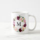 Die Tasse mit blühenden Monogramm-Kaffeemaschinen zeichnet sich durch ein individuelles Monogramm/Initial aus, umgeben von einem Kranz mit Aquarellfarben-Rose in Rosa, Pfirsich, lila und Bordeaux mit üppig grünen Blätter.