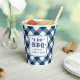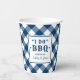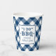 "I do" GRILLEN Hochzeitspapier Party Becher haben eine rustikale marineblau-weiß Gingham Tischdecke karierten gemusterten Hintergrund mit benutzerdefinierten Text für die Braut und Bräutigam Ehepaare, die personalisiert sein können. Ideal für eine lässige Hochzeitsfeier im Hinterhof.