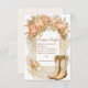 Ein rustikales Design mit schicker Babydusche mit Cowgirl-Stiefeln, die mit rosafarbenen Blütenblättern, weicher Vegetation und glänzenden Golddetails betont werden. Ideal für ein Western-Fest mit einer femininen blumigen Drehung.