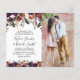 Elegante Butterum & Pflaume Einladungen für Hochzeitsfeiern mit einem Aquarellfieder, Rose und Peony-Blume, einem Foto der zukünftigen Braut & Bräutigam und einer informellen Hochzeitsvorlage, die östlich zu personalisieren ist.