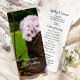 Geben Sie Ihren Gästen die Reihenfolge Ihrer Hochzeitsfeier mit dem lässigen und dennoch eleganten Rustikal Pink Daisies und Cowboy Boots Western Wedding Program. Dieses informelle und elegante, rustikal-schicke Ranch Thema Timeline-Programm bietet ein malerisches Blumenfoto von braunen Lederkuchenstiefeln, gefüllt mit einem Bouquet von hellrosa blauen Blume mit einem rostigen antiken Wagenrad und verschwommenem grünem natürlichen Hintergrund. Perfekte Inspiration für eine Farm-Stil oder Scheune Party Ehe Zeremonie und Empfang.