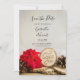 Ankündigen Sie Ihre kommenden Dezember-Nuptials mit der natürlichen rustikalen roten Poinsettia Woodland Winter Hochzeit Retten Sie das Datum Ankündigungen. Diese bezaubernde, eigens für den Wald inspirierte Heirat behalte die Ankündigung des Datums mit einem malerischen, digital verbesserten Naturfoto einer Weihnachtspoinsettienblüte, Holzschnitzereien mit dem Wort LIEBE verbrannt, zwei braunen Kiefernzapfen und einem weißen Brautschleier mit Einbruch und weißem Satin-Hintergrund. Erhältlich als gedruckte Einladung zum Verschicken oder als digitaler Download für den einfachen digitalen Austausch online.