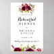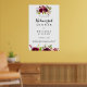 Dieses rustikale Duft Probe Dinner Willkommensschild ist perfekt für eine einfache Hochzeitsfeier Probe. Die Einrichtung besteht aus rosa, rot, bordeauxrot und bordfarbenen Blume mit grünem Blattwerk.