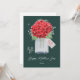 Hübsche grüne Muttertagskarte mit roten Hydrangeas und dem Atem des Babys in einem Kaugummi. Streichlichter und funkelnde Sterne verleihen diesem niedlichen Blumendesign einen zauberhaften Charme. Ein großes Blumenherz mit individuellem Text hinten.