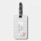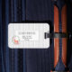 Personalisierter Gepäckanhänger mit coolem boho-Stil, digitales Aquarelldesign. Eine pastellorangefarbene Rentiere-Silhouette in einem Kranz von Kräutern-Blätter. Pilze und Waldfarne zu seinen Füßen. Ein grauweißes Birkenbaummuster im Hintergrund.