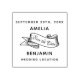 Rustikales Ribbon Drehbuch Save the Date Hochzeit Gummi Briefmarke. Rustikales Band mit Save the Date in trendigem Skript. Einfach mit Ihren Namen, Ihrem Hochzeitsdatum und Ihrem Standort personalisieren.