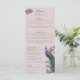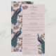 Dieses elegante, Elfenbein-Komplettmenü mit handgezeichnet "Chinoiserie-Style"-Illustrationen eines blauen und aquamarinen Pfauenvogels inmitten der Magnolia-Vegetation, zeigt lebendige Creme und blütige rosa magnolische Blume, die alle auf einem eleganten, rot-rosa Hintergrund stehen. Die Rückseite ist mit einem eleganten Blumenmuster und einem Vogelmuster mit koordinierenden Illustrationen versehen. Alle Texte können bearbeitet werden. Passen Sie Ihre Hochzeitsdetails an, wie z.B. die Namen von Braut und Bräutigam, Vorspeise, Hauptgericht, Desserttisch und Getränke.