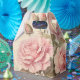 Sehr malerische Darstellung eines kleinen Bouquets aus rosa Rosen und Knospen auf einem beängstigenden Pergament-Hintergrund.