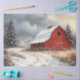 Genießen Sie die herrliche Winterlandschaft mit der rustikalen Kunst und der roten Scheune, die von schneebedeckten Feldern umgeben ist. Der gemütliche Charme der Scheune, gepaart mit der ruhigen Winterlandschaft, erinnert an die Stille der Saison und ist perfekt für diejenigen, die die Schönheit des ländlichen Lebens im Winter schätzen.