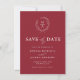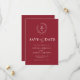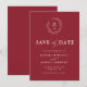 Dieses Design ist eine geschmackvolle und klassische Wahl in der Hochzeit Save the Date Cards, vermittelt eine einfache Eleganz in seinem Text-Layout und klassischen Stil. Ein einfacher, offener Lorbeerkranz mit skizzierten Blätter umgibt den Monogramm-Initial der Braut und Bräutigam über einen romantischen rustikalen roten Hintergrund. Die elegante und dennoch einfache Textvorlage verfügt über eine Mustertextvorlage, die Sie mit Ihren gewünschten Informationen personalisieren können.