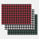 Rustikales modernes Geschenkpackungs-Set mit drei Büffel Karo Packpapier in rot und schwarz Büffel kariert, Schwarz-Weiß Büffel kariert, und Jäger / Pine grün und schwarz Büffel karierte Muster.