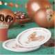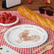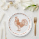 Ein Hahn verleiht diesen Tellern ein rustikales, aber elegantes Ambiente.