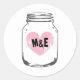 Rustikales Land schicke Mason Glas Hochzeitsaufkleber für Favoriten. Auch gut als niedliche Umschlagsiegeler. Vintages Design für DIY Sommerstall / Garten Hochzeit Party, niedliches Brautparty, Verlobung oder Jubiläum. Hübsches Design mit verblassten Liebe Symbol mit Monogramm mit Namen Initialen von Braut und Bräutigam / Ehemann und Ehefrau. Anpassbare Hintergrundfarbe. Anpassbar mit Namen oder Monogramm. Rosa verwittertes Herz.