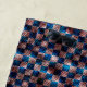 Rustikales Schachbrettdesign in einem anderen Stil, ein Look, der mit gekreuzten Kratzern in Lachs und blauen Farben und Tönen, die die Wahrnehmung von Verdrehungen oder Wölbung Teile.