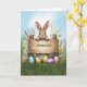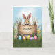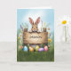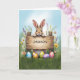 Feiern Sie Ostern auf lustige und personalisierte Weise mit dieser bezaubernden Karte! Hinter einem rustikalen Holzschild thront ein süß-bräunlicher Hase, dessen Pfoten spielerisch über den Rand pinkeln. Umgeben von frischem Gras und farbenfrohen Wildblumen, mit einem strahlenden Frühlingshimmel im Hintergrund, erweckt diese Karte die Freude der Saison. Das hölzerne Schild hat einen individuellen Namen, der es zu einer einzigartigen und nachdenklichen Wahl für jedes Kind, zwischen oder sogar Teenager macht. Mit seiner charmanten Illustration und der fröhlichen Osterbotschaft im Inneren ist diese Karte eine wunderbare Möglichkeit, einem ganz besonderen Ostern ein Lächeln zu bringen!