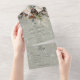 AUCH MIT DETAILS ODER QR CODE VERFÜGBAR. Erleben Sie Ihre Gäste in der ruhigen Schönheit des Winters mit unserer exquisiten Einladung zur Hochzeit. Eine beruhigende, staubige Kulisse schafft eine friedliche Leinwand für eine atemberaubende Anordnung von frisch grünen Kiefernsporen, cremefarbenen Blüten und rustikalen braunen Nadelkronen. Dieses natürliche Meisterwerk ist mit einem zarten Schneefall von schimmernden Silberschneeflocken geschmückt, der den Zauber eines Winterwunderlandes einfängt. Das Zusammenspiel von Texturen und Farben ruft ein Gefühl von gemütlicher Wärme und festlichem Beifall hervor und setzt den perfekten Ton für Ihre Winterfeier. Lass dieser Einladung sei der erste Blick auf den magischen Tag, den du geplant hast. Erstellt von der einfachen Farmhouse Press.