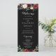 Dieses rustikale schwarze botanische Hochzeitsprogramm ist perfekt für eine klassische Hochzeit. Das Design besteht aus bordeauxroten, marinierten, blauen und rot strahlenden Blume mit anmutigen, handbemalten, schwarzen Hintergrund, die die natürliche Schönheit inspiriere.